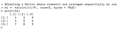 • byrow: It is a logical value i.e. TRUE or FALSE. If TRUE then the input vector elements are arranged by row.If we want the matrix to be filled by columns, we need to pass Byron = FLASE.