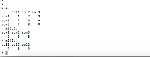 We can use the square brackets ( [] ) to select one or multiple elements from a matrix, similar to Vectors.Whereas vectors have one dimension and matrices have two dimensions. We need to use a comma to separate the row value selection and column value selection.