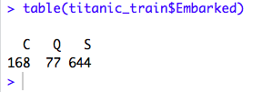 As we can see, this “titanic_train” dataset has 891 observations and 12 variables. If we want to find out the levels of the variable “Embarked” and how many observations are there for each of those levels, we can use the Table() function. Let’s have a look at the code in R: