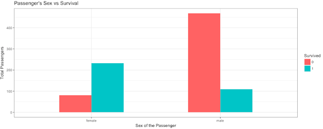 Now, let’s try to plot two categorical variables “Sex” of the passenger and their “Survival” ratio.
