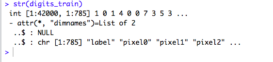 The First column is “label” and the remaining columns are “pixel0”, “pixel1” and so on.