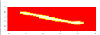 First, let’s try to figure out the first handwritten number. We will take the 1st-row values and will simply use the image() function to plot the values.