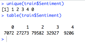 So, there are 5 unique sentiments as stated above. But, the data is not equally distributed.